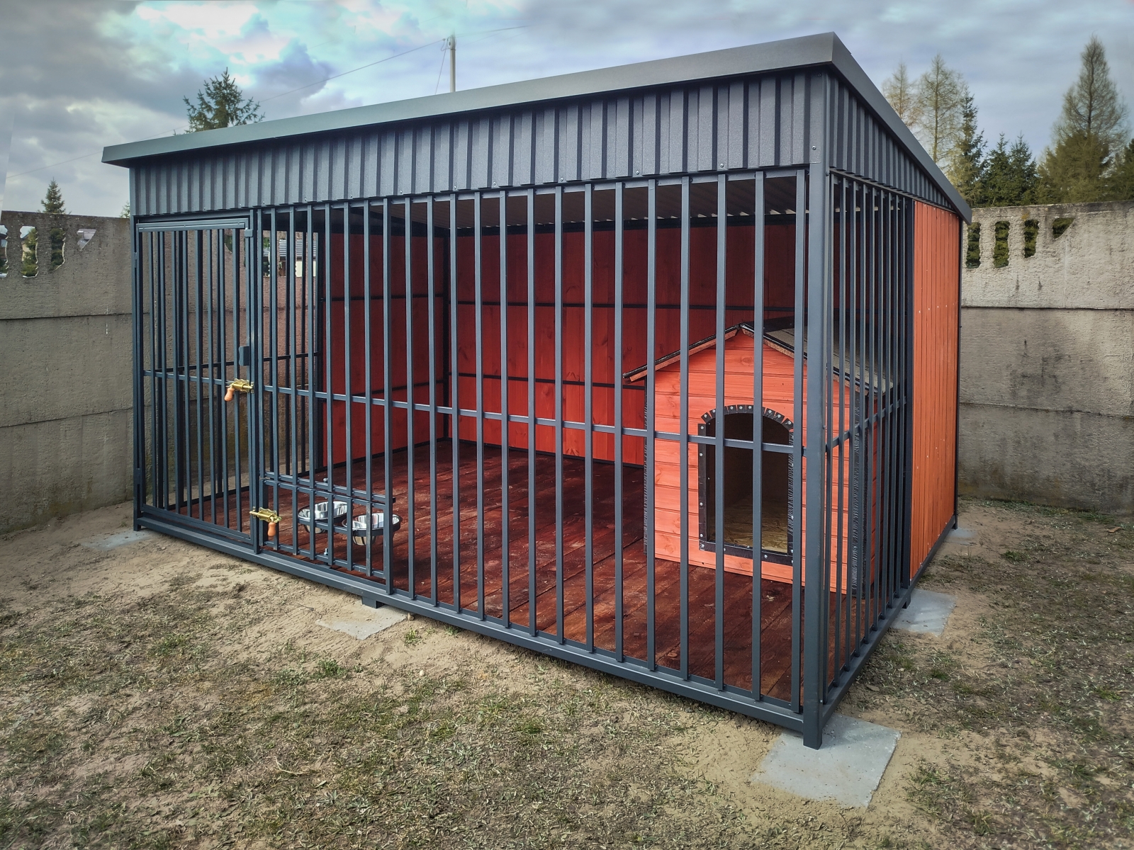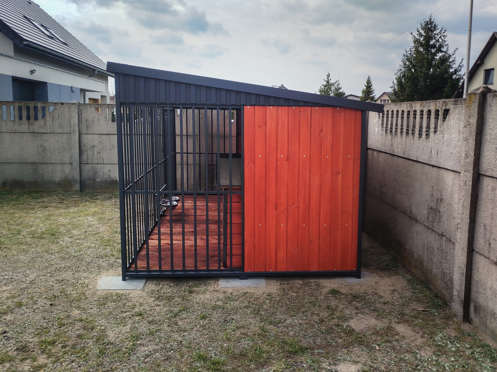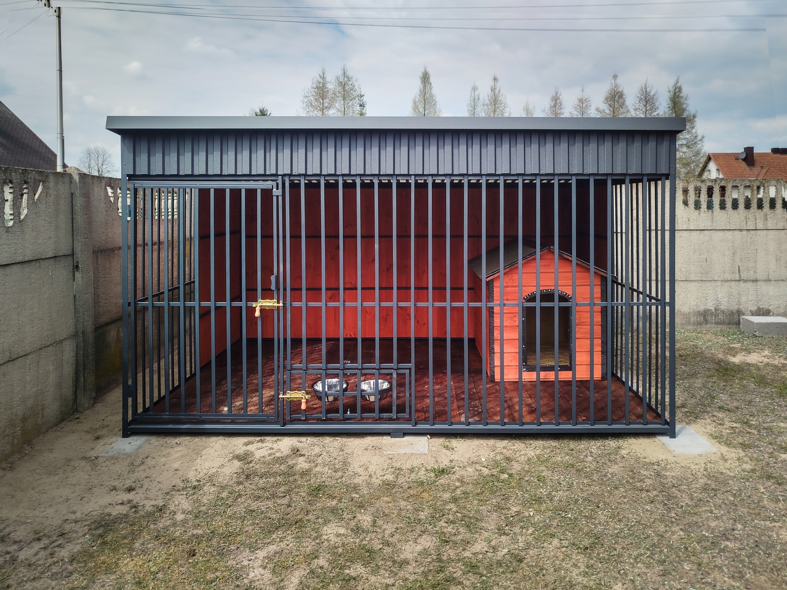 Kojec dla psa z podłogą, budą i miskami 3x2m, model: Rego